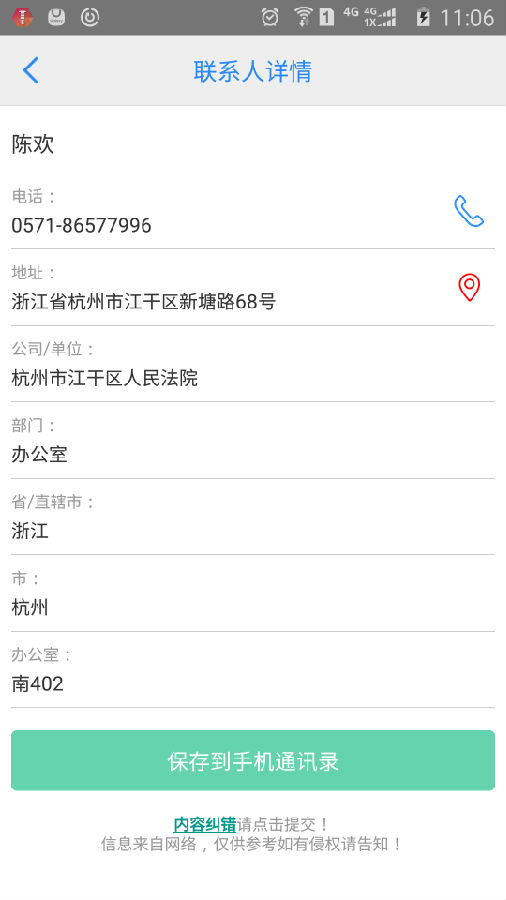 可以直接撥打,可以導航,還可以保存到手機通訊錄