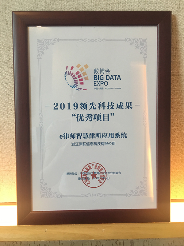 律聯(lián)科技的“e律師智慧律所應(yīng)用系統(tǒng)”在600多個參賽項目中脫穎而出,榮獲大會頒發(fā)的“2019領(lǐng)先科技成果-優(yōu)秀項目”獎項,律聯(lián)科技CEO:程素華先生在大會中登臺領(lǐng)獎。